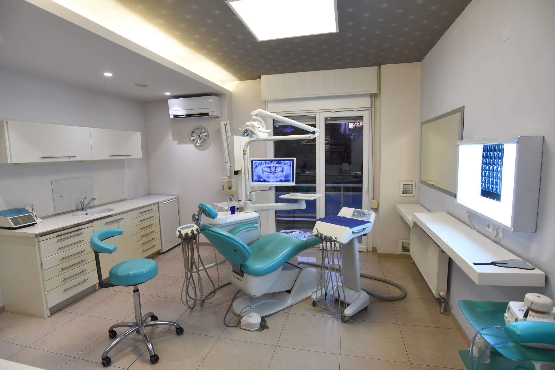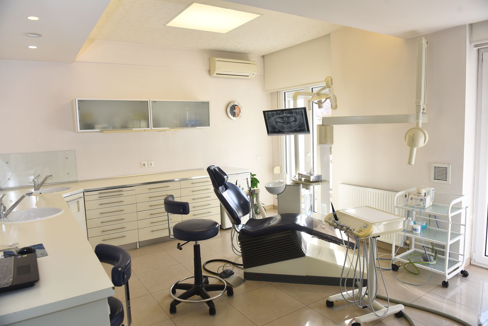 Μεγάλη σημασία αποδίδουμε επίσης στην ανώδυνη εκτέλεση των εργασιών μας, για αυτό και το οδοντιατρείο μας είναι εξοπλισμένο με συσκευή ηλεκτρονικής αναισθησίας. Όπου απαιτείται ακτινογραφικός έλεγχος, χρησιμοποιούμε συσκευή ψηφιακής ακτινογραφίας, ώστε η επιβάρυνση των ασθενών μας με ακτινοβολία να είναι η ελάχιστη δυνατή.